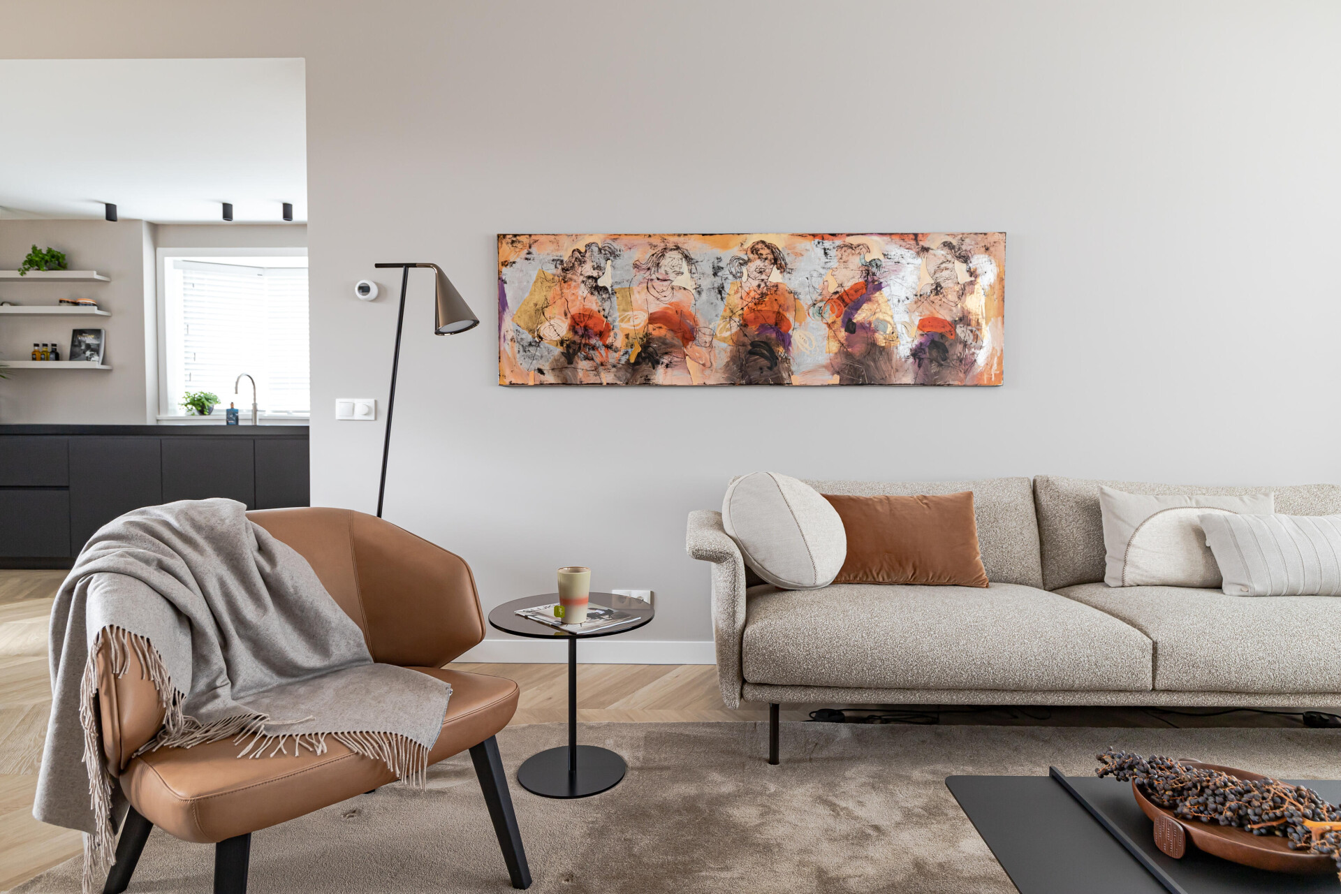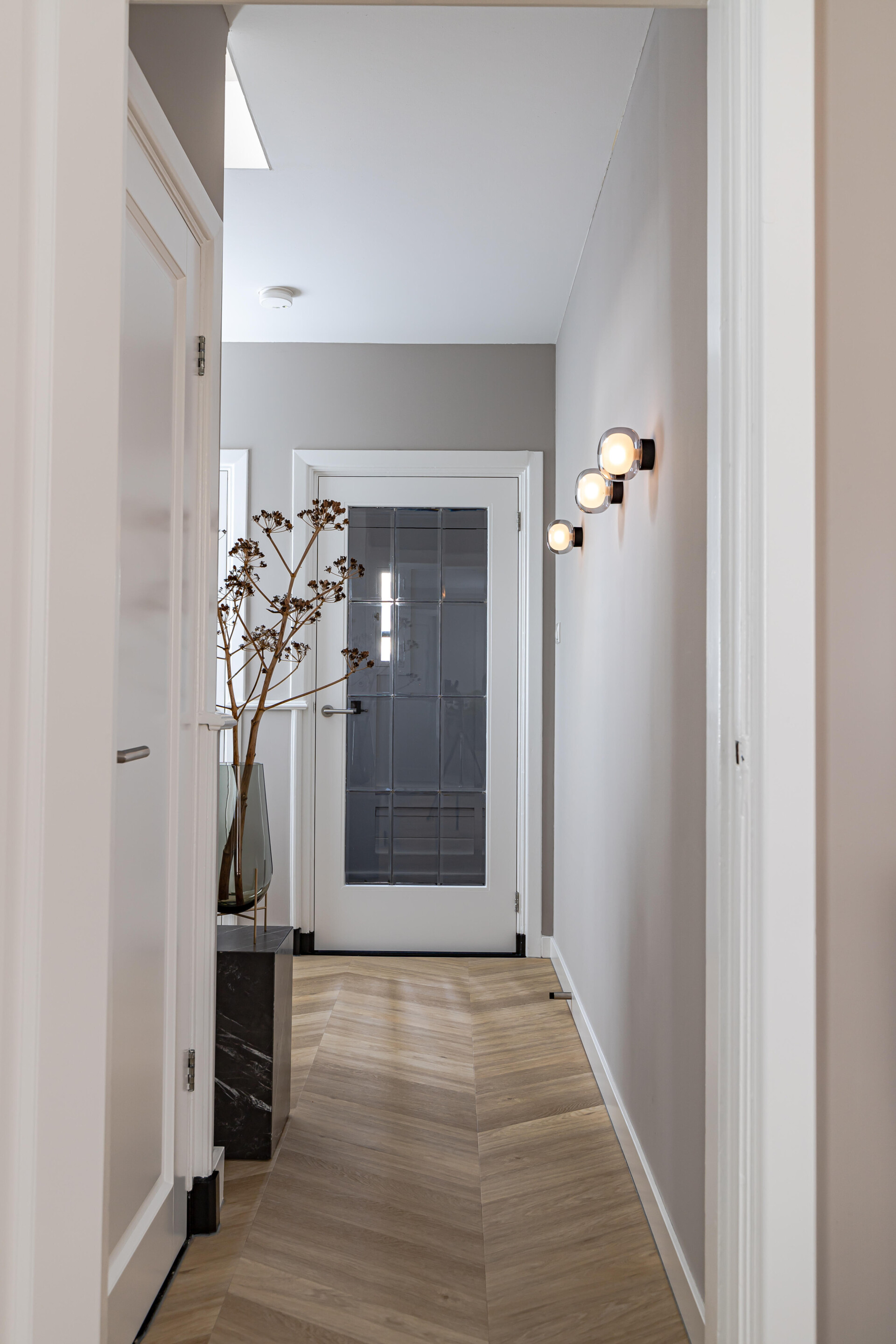 Piękne elementy domu z lat 30. zostały w pełni przywrócone, ale w nowoczesnym wyglądzie. Węgierska podłoga punktowa 6542 z serii Chevron jest z tym w pełni zgodna. Dzięki zastosowaniu podłogi w ciepłym kolorze jako bazy w połączeniu ze świadomym wyborem akcesoriów, materiałów i kolorów, stworzono harmonijną całość.
