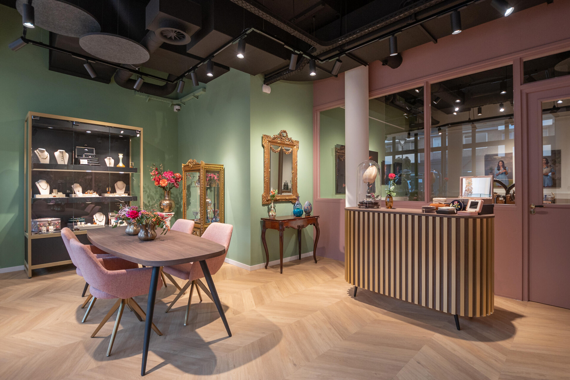Hoogenboom & Bogers Fine Jewellery projektują i tworzą biżuterię we własnym sklepie i atelier. Sklep został wyposażony w różne modułowe meble projektowe od Forbettershops, co pozwala na efektywne wykorzystanie przestrzeni.