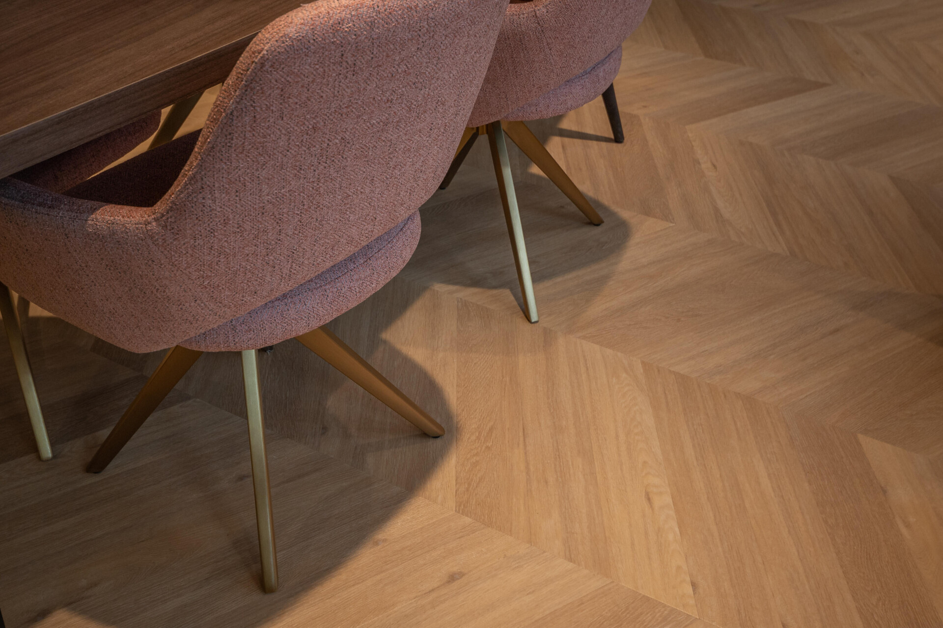 Wnętrze doskonale uzupełnia podłoga Therdex 6541. Wzór węgierskiej jodełki tworzy piękną, spójną całość w całej przestrzeni.