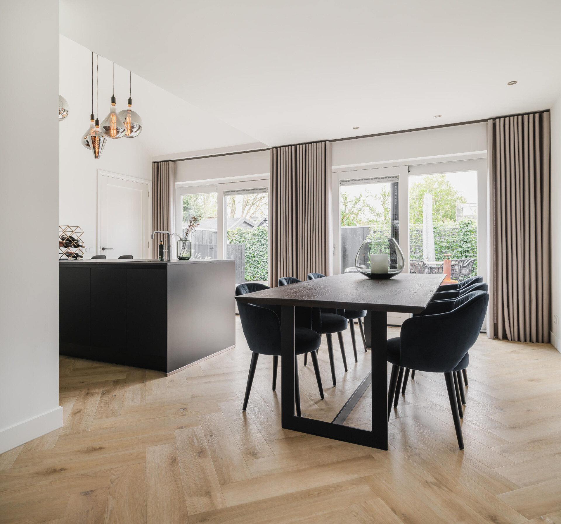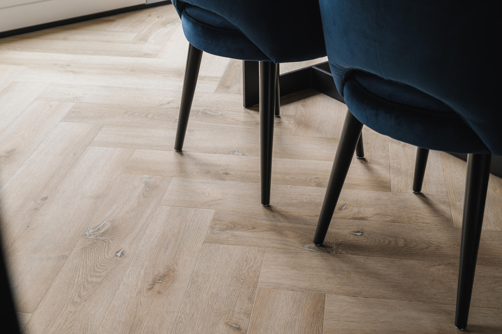 Typ 7541 zrealizowany w klimatycznym domu. Widać wyraźnie, że rozwój tej jodełki pochodzi ze świata parkietu. Szorstkie, sprane sęki tworzą unikalny i wierny naturze wygląd.