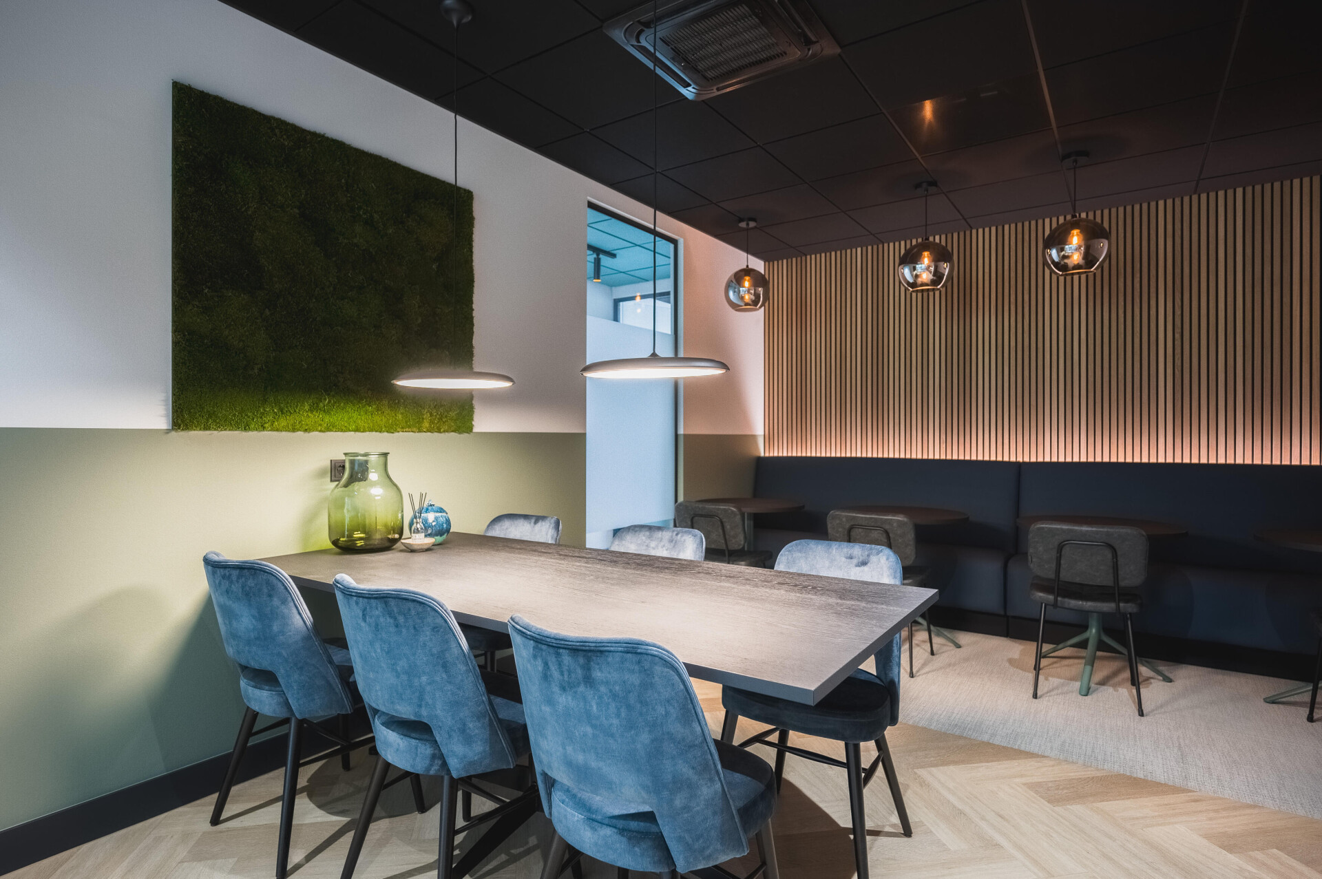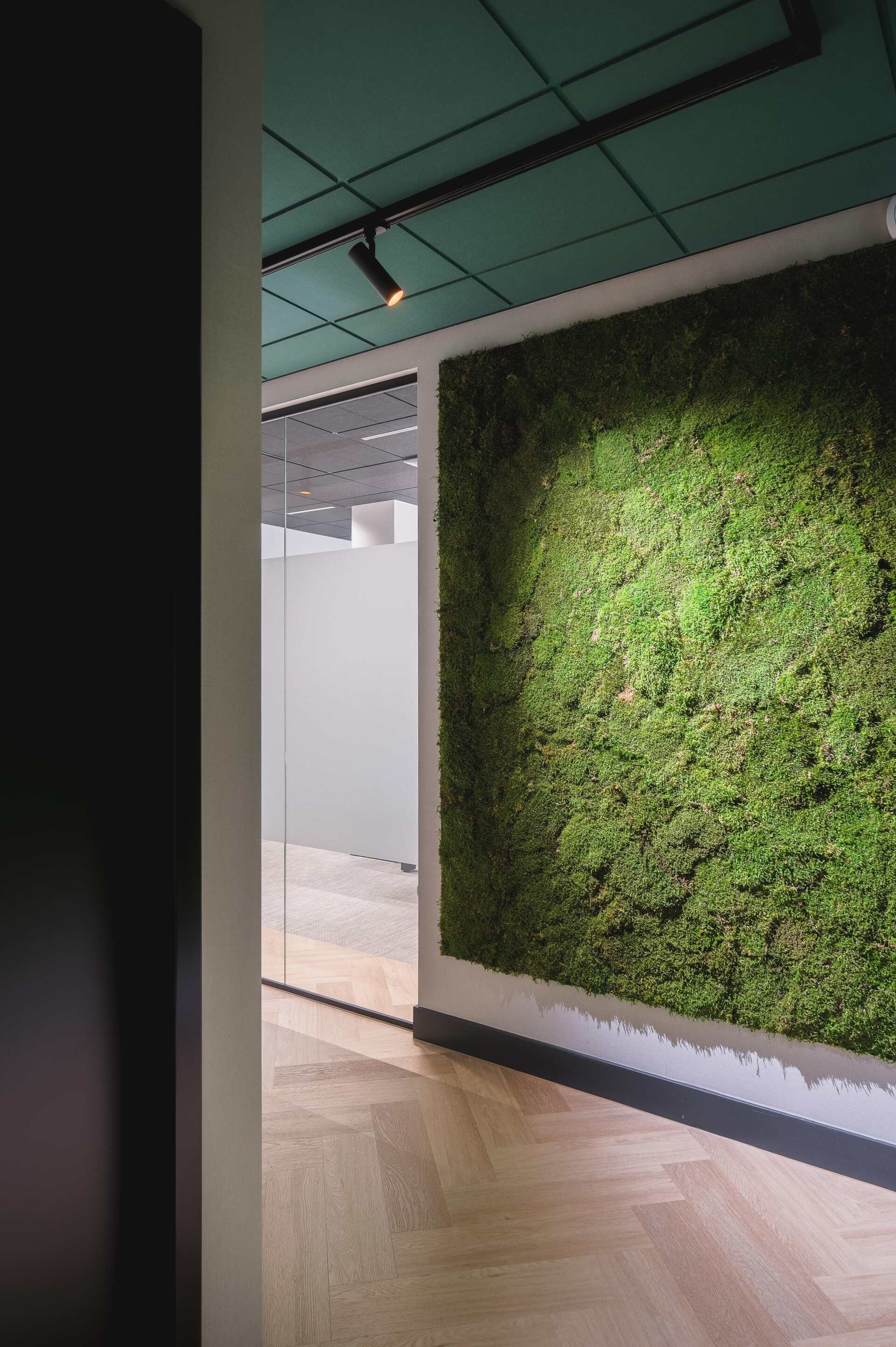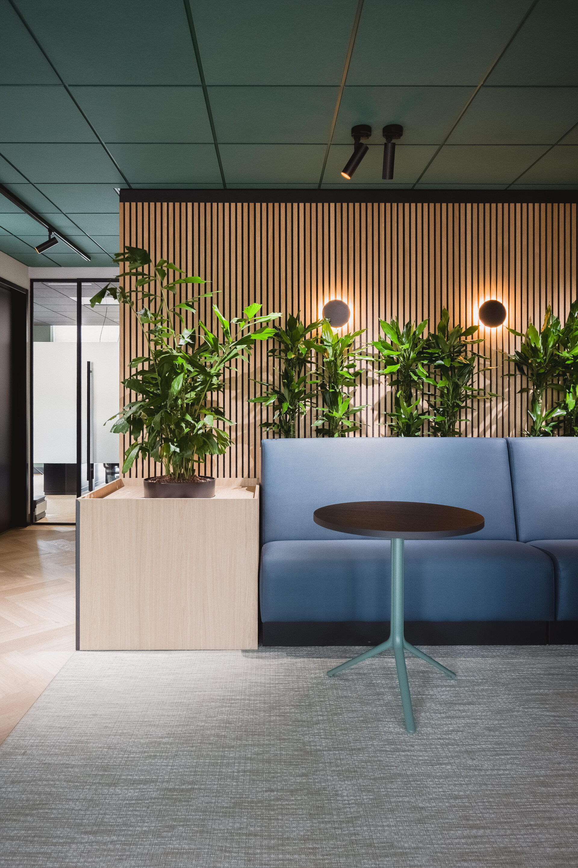 Nowa siedziba główna zasługuje na nowe i odpowiednie wnętrze. Motyw przewodni tego projektu został zaczerpnięty z identyfikacji wizualnej PGVZ Opieka Domowa: koloru zielonego. Połączono go ze spokojnymi barwami i naturalnymi materiałami, aby stworzyć relaksujące miejsce pracy. Przestrzenie oddzielone są szklanymi ścianami, co tworzy otwarte i dynamiczne środowisko, dające poczucie gościnności.