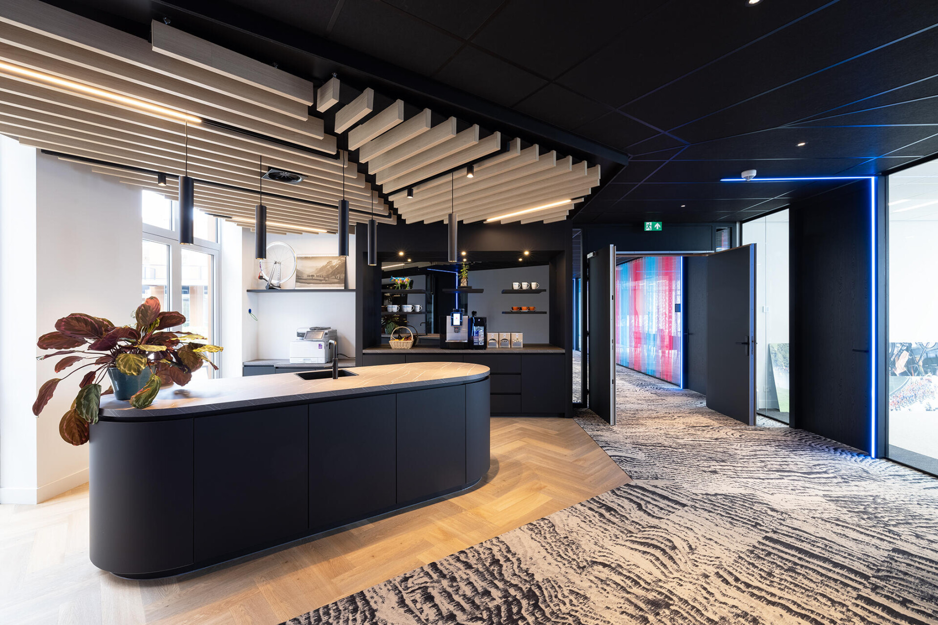 Zaprojektowane zupełnie nowe wnętrze dla nowego oddziału Tacx w Oestgeest. Wnętrze charakteryzuje się jako innowacyjne, zaawansowane technologicznie, kolorowe, a jednocześnie ciepłe i luksusowe.